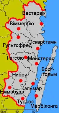 Адміністративно лен Кальмар поділяється на 12 комун:
