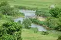 Ширина русла річки на території заповідника становить 20-30 метрів. Долина річки через вихід гранітів нагадує каньйон. Правий берег Кальміусу крутіший і обривистий. Тут зустрічаються високі гранітні стовпи та стіни, прорізані ущелинами.[1]