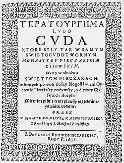 - Kalnofoysky Athanasius. ΤΕΡΑΤΟΥΡΓΗΜΑ lubo cuda… — Kijow: Z drukarni Kijowopieczarskiey, 1638. — 356 s.