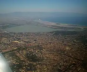 Vista aerea: Quartiere del Sole, Molentargius, Sella del diavolo e Poetto