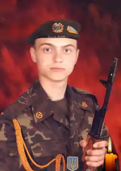 Призваний за мобілізацією у березні 2014-го. Молодший сержант 9-ї артилерійської батареї, 27-ма окрема реактивна артилерійська бригада.