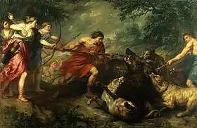 ![]() Теодор Буєрманс. Мелеагр вбиває калідонського вепра. Картина 1677 року | |