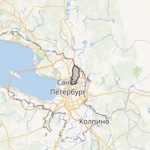 - На сході з Красногвардійським — від осі Центральної вулиці на південь по західній стороні смуги відведення залізниці Санкт-Петербург — Приозерськ, далі на південний захід по осі Піскаревського проспекту до осі річки Неви.