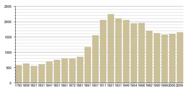 Динаміка населення (base Cassini de l'EHESS pour les nombres retenus jusque 1962[3], base Insee à partir de 1968 (population sans doubles comptes puis population municipale à partir de 2006)[4] · [5] ):