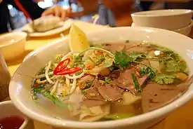 Багато елементів камбоджійських страв з локшиною були натхненні китайською кухнею,[6] незважаючи на те, що в них збереглися відмінні кхмерські варіації. Prahok ніколи не використовується зі стравами з локшини. Локшина з рисової вермішелі використовується в mee katang (кхмер. មីកា តាំង), який представляє собою камбоджійський варіант chǎo fěn з соусом. На відміну від китайського варіанту chǎo fěn, локшина перемішана смаженою яловичиною і овочами й увінчана яєчнею-плетухою. Локшина по-бірманськи (кхмер. មី កុឡា, Mee Kola) — це вегетаріанська страва, що являє собою тонку рисову локшину, приготовлену на парі із соєвим соусом і часниковим зубчиком. Подається все це з маринованими овочами Jroak (кхмер. ជ្រក់), яйцями, нарізаними соломкою, і солодким часниковим рибним соусом (який насправді НЕ вегетаріанський), прикрашеним подрібненим арахісом. Mi Cha (кхмер. មីឆា) — смажена яєчна локшина.