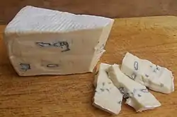 Колір світло-жовтий, з невеликими вкрапленнями зеленої плісняви, на поверхні присутня м'яка біла цвіль, що є типовим для цих сирів.