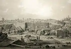 Архітектор О. Монферран[2], відвідавши каменоломні, зауважив у своєму щоденнику: „Подив, який ми відчували бачачи гранітні скелі, був, звісно, великий, але він змінився щирим захопленням, коли пізніше ми оглядали в першому кар’єрі сім ще не оброблених колон... Видобуток гранітів, праця в усіх інших місцях не зовсім звичайна, зустрічається в Росії дуже часто і на ній тут вельми добре розуміються”.