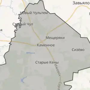 В 1929 році Старокенська сільська рада з центром в селі Старі Кени входить до складу Іжевського району. В 1937 році сільрада входить до складу Зав'яловського району і містила в собі села Кам'яне, Дінтем, Урал, Болтачево, Зоря-1, Зоря-2. В 1954 році до них додаються села Мещеряки та Старий Чультем Новочультемської сільської ради. 1962 року сільрада переходить до відновленого Іжевського району, але в 1965 році повертається назад. Указом президії Верховної Ради Удмуртської АРСР від 23 жовтня 1970 року сільрада перейменована в Кам'янську з перенесенням центру до села Кам'яне. На 1984 рік до складу сільради входили села Болтачево, Дінтем-Бодья, Люллі, Мещеряки, Новий Урал, Старий Чультем, Новий Чультем, Сизево, Старі Кени, Кам'яне та селище Другий Іжевський лісопункт. Пізніше село Люллі було передане до складу міста Іжевська.