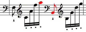 У лівій руці теж з'являються великі інтервали (більші, ніж у правій). У 101-му такті ліва рука грає стрибок на три октави. В етюді також є інші складні технічні прийоми, наприклад трель четвертим і п'ятим пальцями.