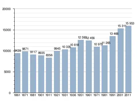 Станом на 31 грудня 2014 року в муніципалітеті офіційно проживали 1064 іноземці з 41 країни, серед них 559 громадян країн Євросоюзу та 59 громадян України.[4]