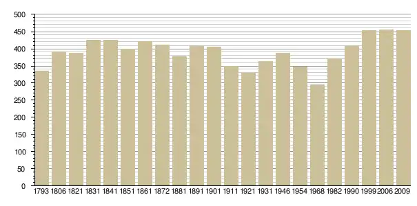 Динаміка населення (base Cassini de l'EHESS pour les nombres retenus jusque 1962[3], base Insee à partir de 1968 (population sans doubles comptes puis population municipale à partir de 2006)[4] · [5] ):
