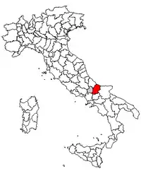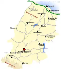 Межує на півночі з регіоном Абруццо (провінцією К'єті), на південному сході з регіоном Апулія (провінцією Фоджа), на півдні з регіоном Кампанія (провінцією Беневенто та провінцією Казерта), на заході з провінцією Ізернія.