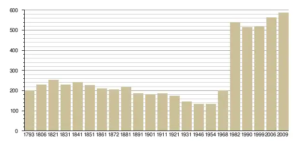 Динаміка населення (base Cassini de l'EHESS pour les nombres retenus jusque 1962[3], base Insee à partir de 1968 (population sans doubles comptes puis population municipale à partir de 2006)[4] · [5] ):