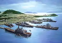 Затока Камрань з радянським військовим флотом. Плакат 1985 року