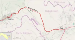Прокладено через Курамінський хребет (Тянь-Шань) під перевалом Камчик.