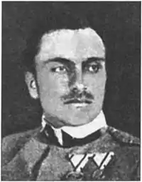 Поручник, командант кінної сотні[1][2] Загинув 1 липня 1917 під час боїв із російською армією під Конюхами.