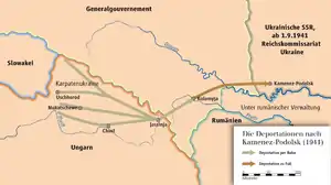 ![]() Карта депортації євреїв з Угорщини до Кам'янця-Подільського Карта депортації євреїв з Угорщини до Кам'янця-Подільського | |||||||||