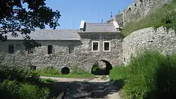 Верхні ворота Руської брами. На горі, куди йшла дорога від Руської брами до міста, були ворота в стіні, як видно з плану 1684 p., але ворота й стіна не збереглися до наших часів. Ці ворота певне знищено, коли в XVIII ст. будували великі будинки для військових казарм («кошари»), де потім містився військовий шпиталь.