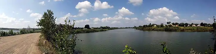 Панорама частини Кам'янського водосховища. Вигляд на село |