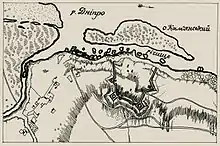 За описом ретраншемент являв собою укріплення з ровів і земляних валів з частоколом по периметру. Південний фронт утворювати два редуту на відстані близько 65 метрів один від одного, від редутів до берега йшли бічні фронти з реданними виступами.