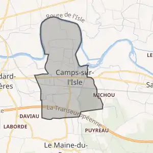 - Camps-sur-l'Isle sur le site de l'Insee, наведено за французькою вікіпедією