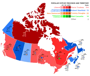 | Лідер | П'єр Трюдо | Роберт Стенфілд | Томмі Дуглас | |