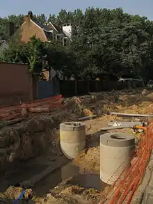 - Сукупність інженерних споруд, устаткування та санітарних засобів, що забезпечує збирання та виведення за межі населених пунктів і промислових підприємств забруднених стічних вод, а також їхнє очищення та знешкодження перед використанням чи скиданням у водойму.