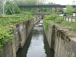 ![]() Шлюз № 14 на каналі Огайо — Ері, в межах міста Акрон. Шлюз № 14 на каналі Огайо — Ері, в межах міста Акрон. | |