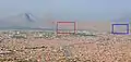 Давнє місто Старого Кандагара (червоний) та гори (синій) на західній стороні