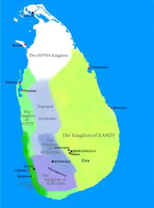 Після розділу Котте найпотужнішим і амбітним з нових держав стала Сітавака, і Канді в 1522 році уклала союз з Португалією, щоб протистояти загрозі з півдня. Однак португальців більше цікавила держава Котте, оскільки саме там були основні плантації коричного дерева, і після 1546 року, коли війська Португалії та Котте вторглися на територію Канді, не залишилося жодної можливості для союзу.
