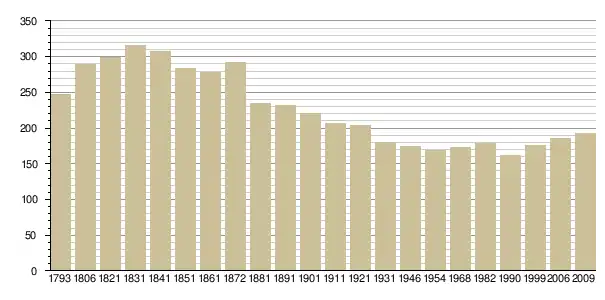 Динаміка населення (base Cassini de l'EHESS pour les nombres retenus jusque 1962[3], base Insee à partir de 1968 (population sans doubles comptes puis population municipale à partir de 2006)[4] · [5] ):