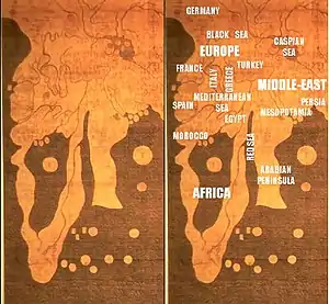 Особливість Каннідо складається в досить точному зображенні Африки, аж до південного краю і річки Оранжевої. Пагода на півночі континенту, ймовірно, символізує Олександрійський маяк; поруч арабським словом «Міср» позначений Каїр.
