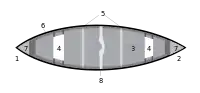 - Весло з однією лопаттю — у каяках використовується весло з двома лопатями