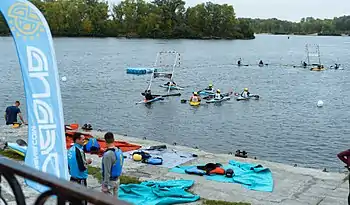 Гра відбувається на відкритих або закритих водоймах, на спеціально встановленому майданчику з воротами, які розташовуються над поверхнею води. У грі бере участь дві команди по 5 спортсменів каякерів (на байдарках) в спеціальному захисному екіпіруванні (рятівний жилет, шолом, весло).