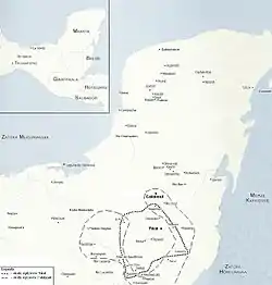 У 520-х роках Туун-К'аб-Хіш уклав союз з могутньою державою Йокіба, що контролювала область верхньої частини долини річки Усумасінти. Проте це призвело у середині 630-х років до війни з царством Па'чан, що було ворогом Йокіби. Ця війна тривала до 640-х років з перемінним успіхом.