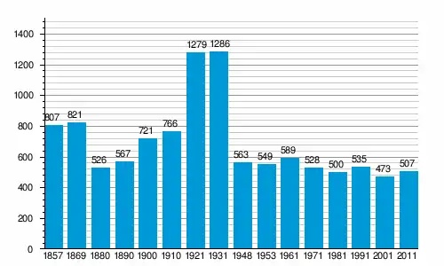 Населення громади за даними перепису 2011 року становило 1 543 осіб[1], 1 з яких назвала рідною українську мову[2]. Населення самого поселення становило 507 осіб.[1]