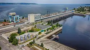 - Правобережна та лівобережна земляні греблі із шлюзом та монтажним майданчиком;
