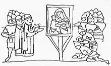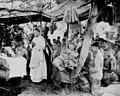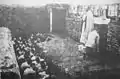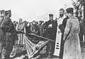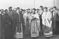 Свячення пасок на Великдень у таборі військовополонених українців у Ріміні, в центрі — священник Мирослав Любачівський (21 квітня 1946)