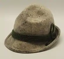 | Тирольський капелюх | Фетровий капелюх, елемент тирольського традиційного костюму | |