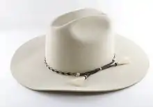 | Ковбойський капелюх | Високий капелюх з фетру або шкіри, зі загнутими по боках полями | |
