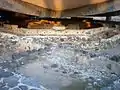 Вид з боку на руїни стін будинку апостола Петра під новою церквою у Капернаумі (2014 р.)