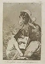 «Як її обскубують!» | ¡ Cuál la descañonan! | Тут у свою чергу зображено алегорію того як чоловіки оббирають жінок.