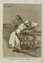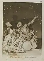«Ось їх і обскубано» | Ya van desplumados | Алегорично зображені жінки, що проганяють своїх обібраних до нитки коханців.