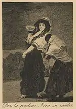 «Хай простить її Бог, це була її мати» | Dios la perdone. Y era su madre | «Пані покинула будинок ще дитиною. Вона вчилася ремеслу в Кадіксі і приїхала в Мадрид, де їй пощастило. Вона відправляється в Прадо, і там брудна і старезна баба просить у неї милостиню. Вона проганяє її, стара пристає. Чепуруха обертається і бачить — подумати тільки! — що жебрачка її матір». |