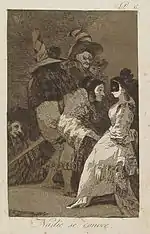 «Він навіть так не розгледить її» | Ni así la distingue | Чоловік роздивляється жінку в лорнет (різновид окулярів), але знати зовнішність не означає знати людину.
