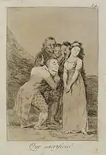 «Невже ніхто нас не звільнить?» | ¿No hay quién nos desate? | «Що це? Чоловік і жінка, зв'язані мотузками, щосили намагаються звільнитися і кричать, щоб їх швидше розв'язали? Якщо я не помиляюся, це жертви насильницького шлюбу». |