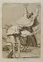«Стривай, ще непомазаний» | Aguarda que te unten | Таїнство помазання церковника зображено як помазання чаклунами козла, що рветься в біг.