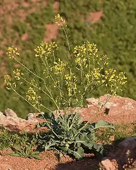 У перший рік утворює вкорочений пагін. На другий рік з бруньок на пагоні розвиваються облиствлені квітконосні пагони висотою до 1,5 м. Листки прості, великі, зазвичай цілісні, м'ясисті, з потужними жилками, зелених, сизих, фіолетових та інших кольорів. Квітки великі, віночок жовтий або білий, до 2 см завширшки. Плоди — стручки з коротким носиком. Насіння кулясте, до 2 мм у діаметрі[1].