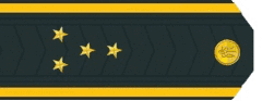 З 1940 року знаками розрізнення стали три стрічки (дві середні, вище від яких одна вузька), а з 1943 року ще і погони з одним просвітом і чотирма маленькими п'ятипроменевими зірками (як у капітана).
