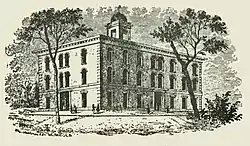 Після рішення Генеральної асамблеї Айови про перенесення столиці штату в Де-Мойн, в 1856 році там почалося будівництво другого будинку Капітолію, який згодом називали «Старим цегляним Капітолієм» (Old Brick Capitol). Ця будівля була Капітолієм Айови 26 років. Будівля була зруйнована в результаті пожежі в 1892 році[2].